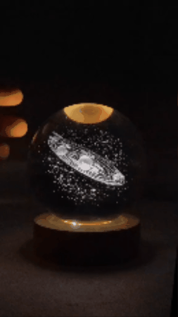 The crystal ball lamp presents a vast and solid universe within its advanced 3D internal engraving and flame extraction technology. The base is made of natural and durable beechwood, which has a warm tone and a long lifespan without any paint or harmful substances.